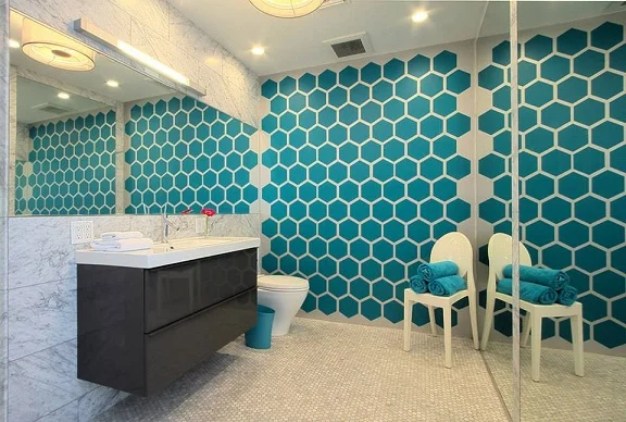 4TH FLOOR - Tennessee Green Luxury Apartments in Atlantic City, NJ. Our hexagon outline wall decals are shown here in black and celedon. Photo courtesy of Lynn Xanthos - Inglese Architecture + Engineering
