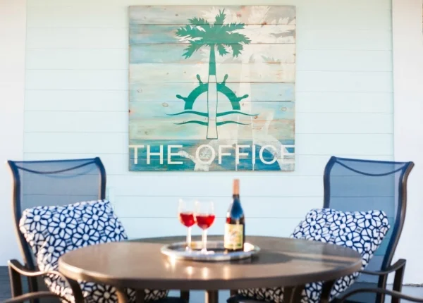 Wall Star Graphics SURF, SUN, SAND reclaimed barn wood sign in the DIY Network Blog Cabin 2013 in North Carolina.