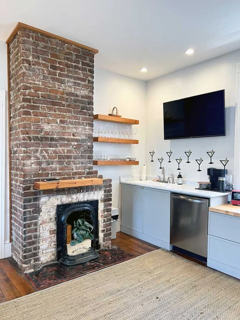 The beautiful, long term option rentals at Percy Street Flats gives you the opportunity to experience Charleston like a local. We are excited to have several of our wall decals featured. The Tater showcases our martini wall decals in the kitchen. The Eliza showcases our retro glasses in the bedroom. The Ethan showcases our retro flowers in the first bathroom, and more of our martini wall decals in the second bathroom. Photo credit: Percy Street Flats